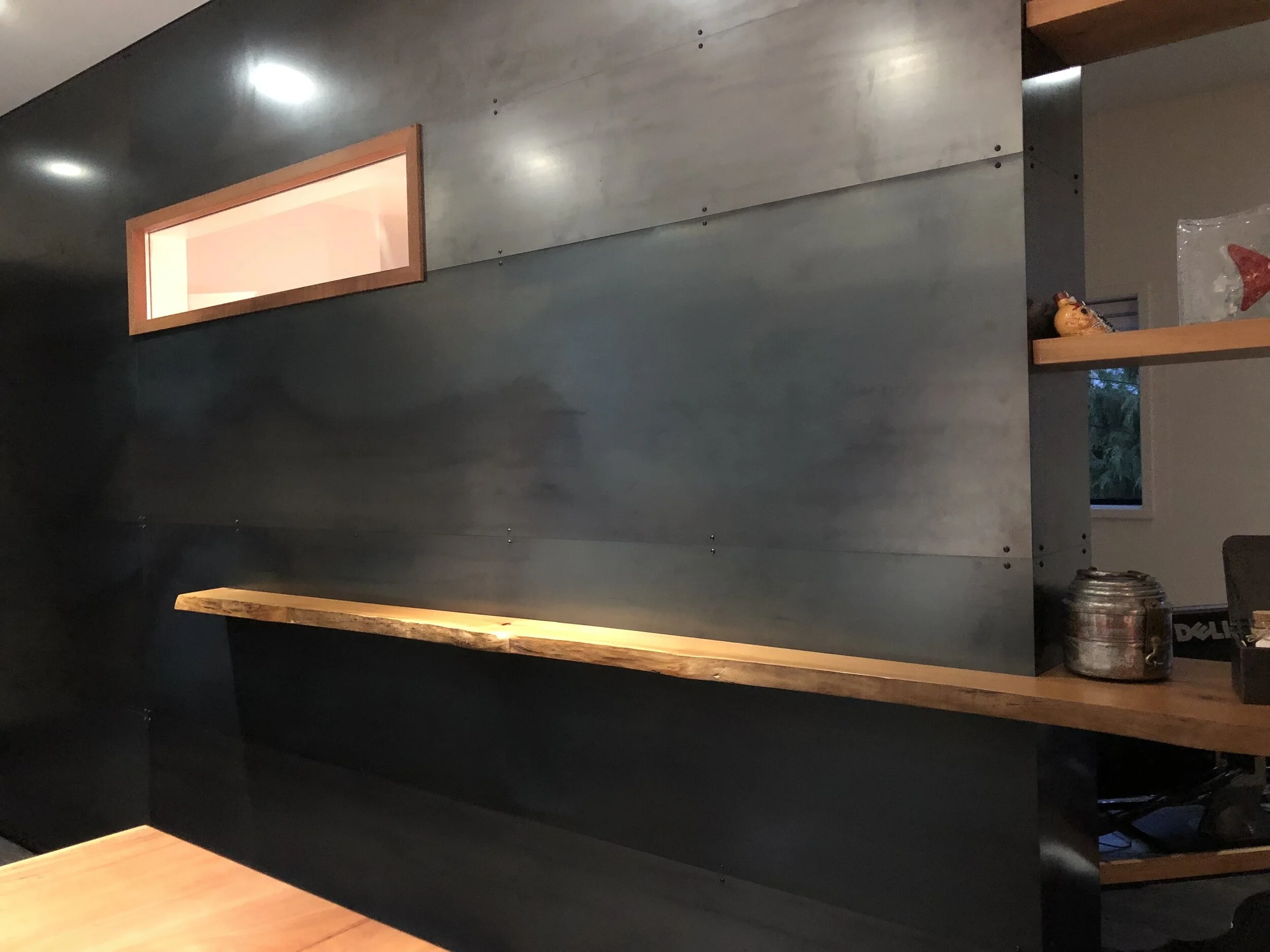The 660sf interior remodel opened up three separate existing spaces (kitchen, living, dining), to each other and the adjacent outdoor spaces.
